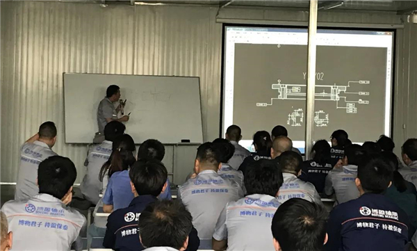 過程中博盈軸承魏紀(jì)偉總經(jīng)理匯報了博盈軸承在研發(fā)中心建設(shè)、和中原工學(xué)院開展的校企聯(lián)合培訓(xùn)、廠內(nèi)員工技術(shù)培訓(xùn)班等技能提升項目的發(fā)展進展。以及博盈軸承自2020年11月新廠建成以來,博盈軸承在宜陽縣產(chǎn)業(yè)集聚區(qū)帶動就業(yè),原料及配套產(chǎn)品本地化采購、生產(chǎn)的情況。