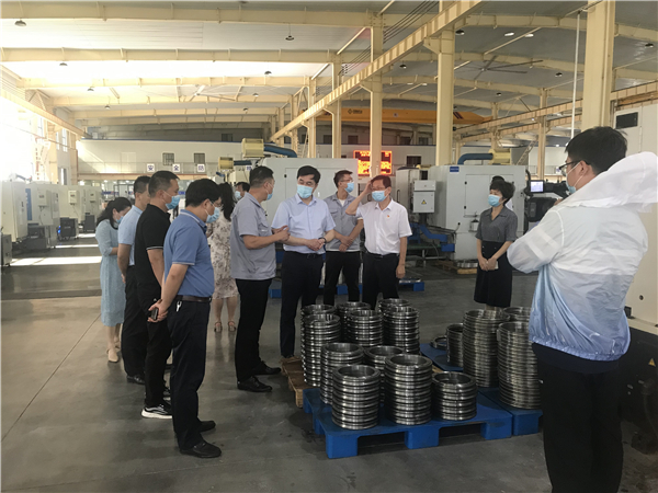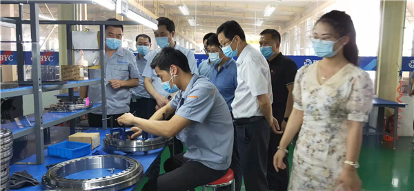 魏險峰副市長一行到我司后,實(shí)地了解我司主營的交叉滾子軸承、YRT轉(zhuǎn)臺軸承和交叉圓錐滾子軸承生產(chǎn)情況。公司領(lǐng)導(dǎo)魏紀(jì)偉介紹了企業(yè)遷入產(chǎn)業(yè)集聚區(qū)后的經(jīng)營情況和企業(yè)的未來發(fā)展規(guī)劃。